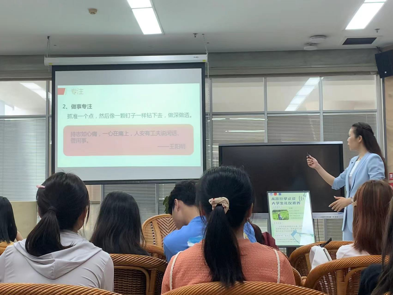 涂老师强调学生要有激情、专注力、执行力、终生学习和终生反省的能力,最好在学生时期就培养起自己的爱好并精进,与专业相配合成为复合型人才。她特别强调执行力,从前在部队当兵时的经历使她领悟到“令行禁止”这四个字不仅是部队管理人员的方法,也同样适用于自我管理。令行则行,令禁则止,心中要有一杆秤,举止才能进退有度,礼貌合宜。