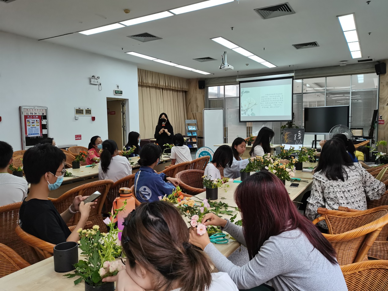5月11日和22日,图书馆邀请到泉塘手作艺术中心的谭江雁老师,先后在大学城校区图书馆和白云山校区图书馆悦读沙龙室,为同学们带来两场主题为“人文花道 浮生花开”的人文花道体验活动。