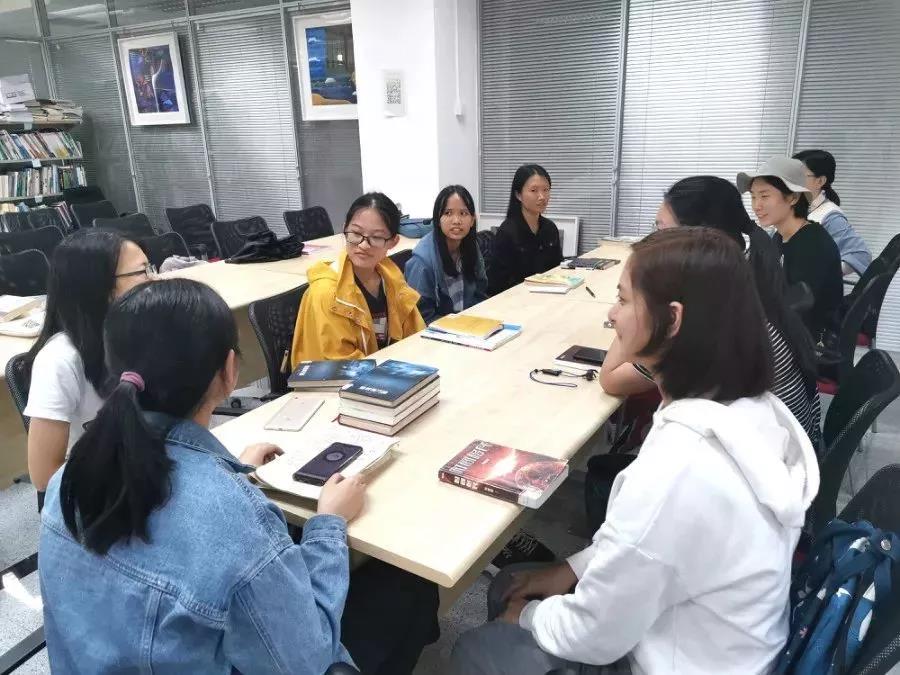 在广外北校区图书馆一楼的悦读沙龙室,爱读书的同学们齐聚一堂,共同参加了以“未来幻想”为主题的云山论书活动。