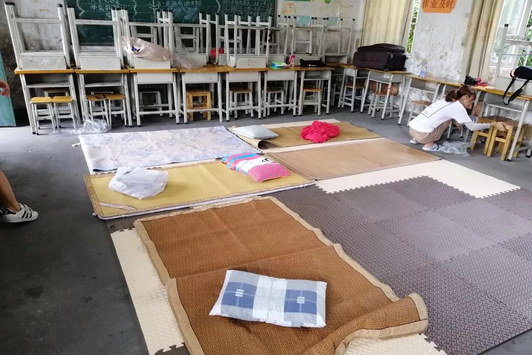居住的环境很简陋。24号人挤在三间教室里,没有床,没有空调,只有几个晃悠悠转起来的吊扇。把课桌移开,我们用泡沫地板铺地,泡沫上再铺上席子,就这样睡了两个星期。