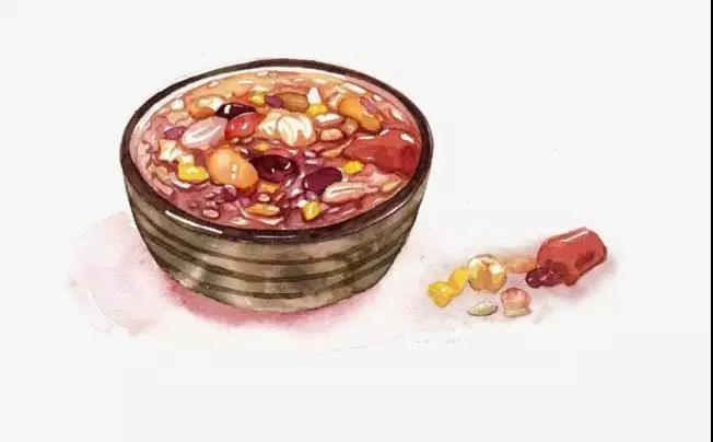 “这天的早晨要熬一锅粥,粥里要有八样粮食——其实只需七样,不可缺少的大枣算一样。据说在解放前的腊月初八凌晨,庙里或是慈善的大户都会在街上支起大锅施粥,叫花子和穷人们都可以免费喝。”