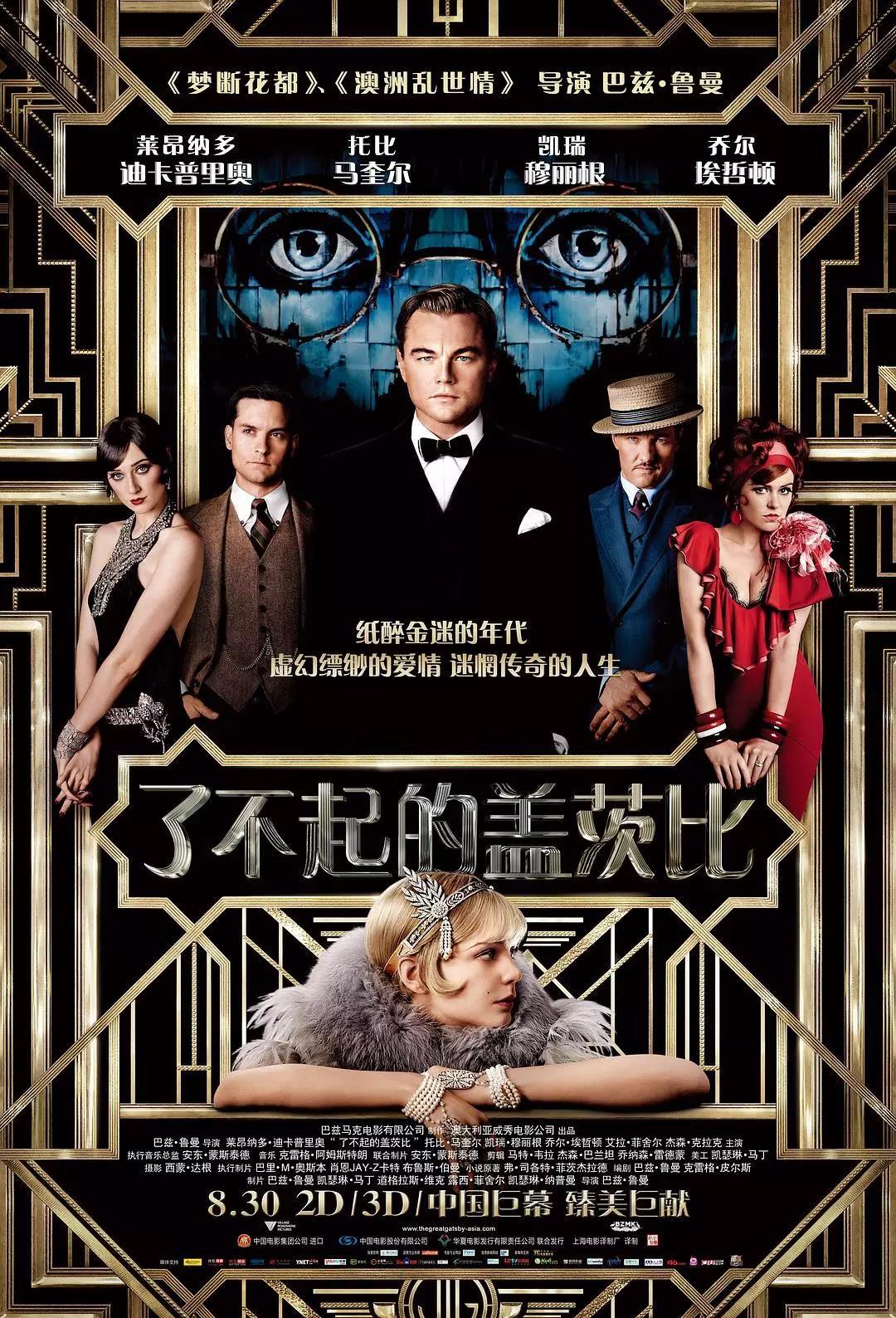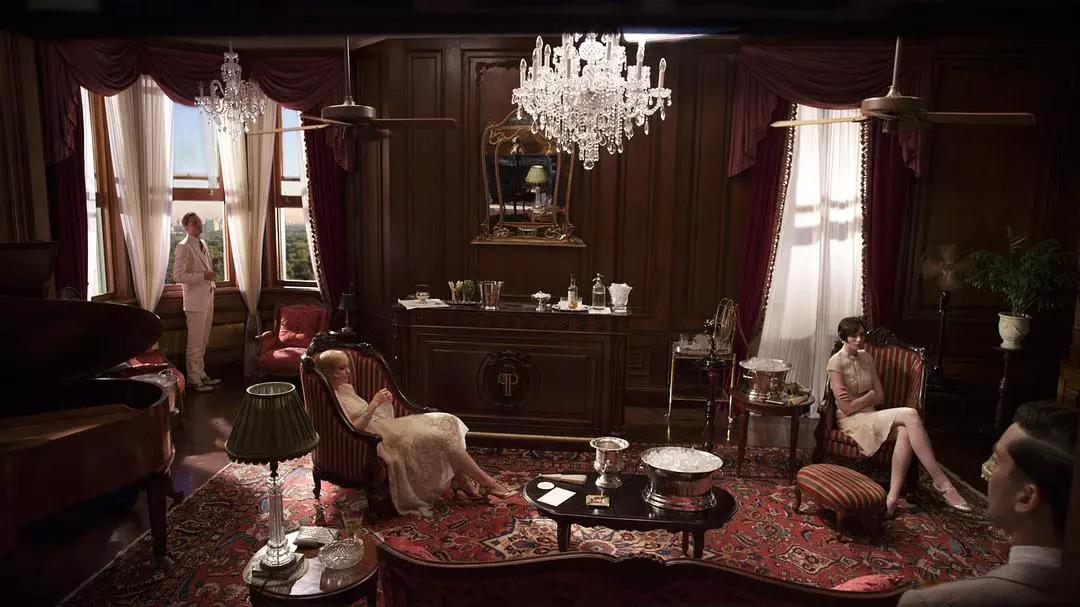 电影美轮美奂的场景、奢华精致的服装极大地还原了书中纸醉金迷的上流社会生活。而其中与原作最大的不同之处,则在于电影以尼克(黛西的表哥)的视角展开,以其去心理医生处寻求治疗作为贯穿全文的线索。