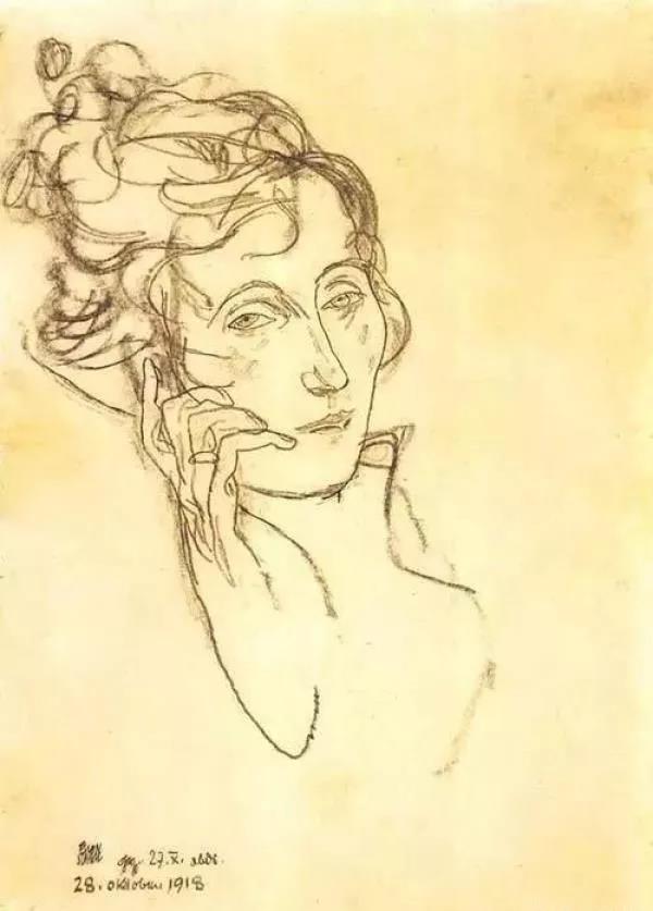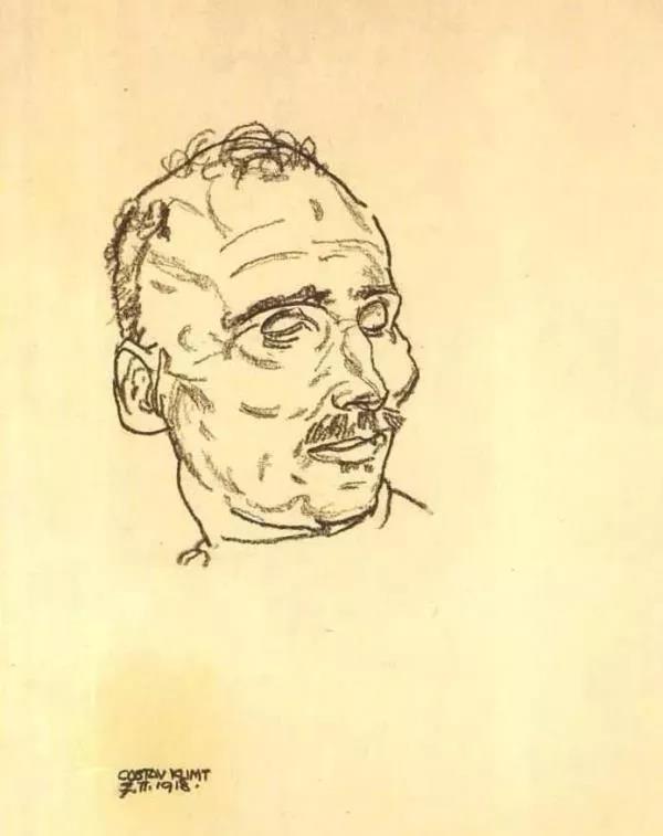 埃贡·席勒在克里姆特临终前,绘制了他的手稿《古斯塔夫·克里姆特,病逝在床上》,清晰地刻画出克里姆特深深凹陷的面孔。