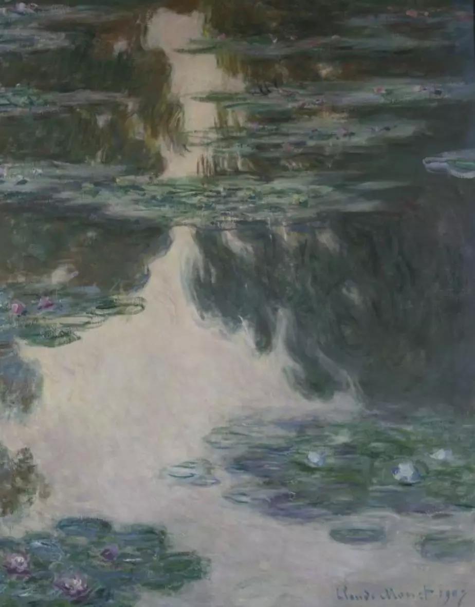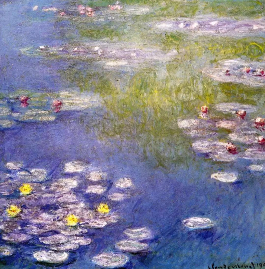 “希望紧张不堪的神经在此得到放松,就像水面一样的平静,人们犹如置身花池中央,在此静思默想。”莫奈在酝酿这批作品时写道。其实从1914年开始,莫奈就陆续开始了这批作品的创作,直至1926年。