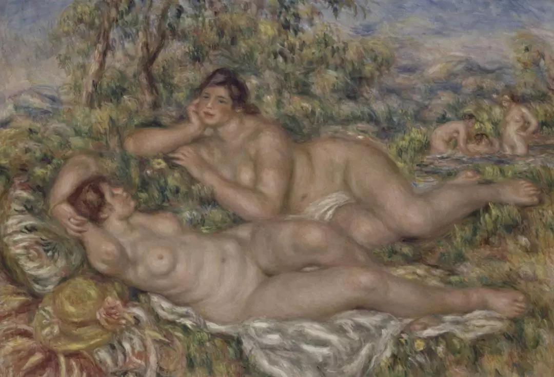 在此期间他依旧坚持作画。1918至1919年,雷诺阿还画了《两浴女》。