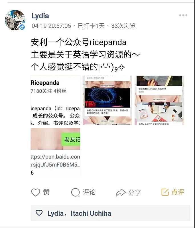好物安利类:喜爱的文具用品分享、阅读或学习相关的实用app的分享、欣赏的博主的分享等。