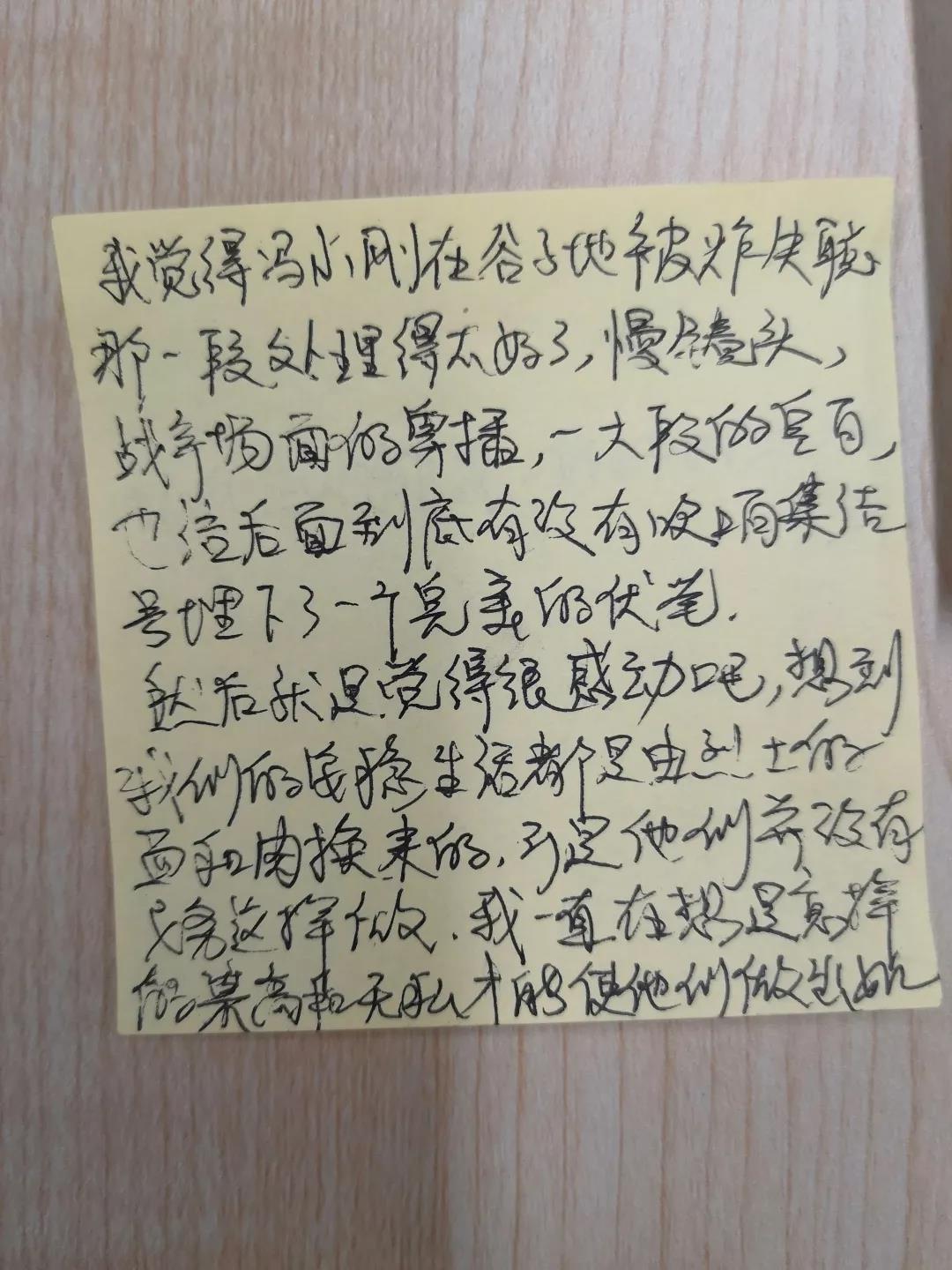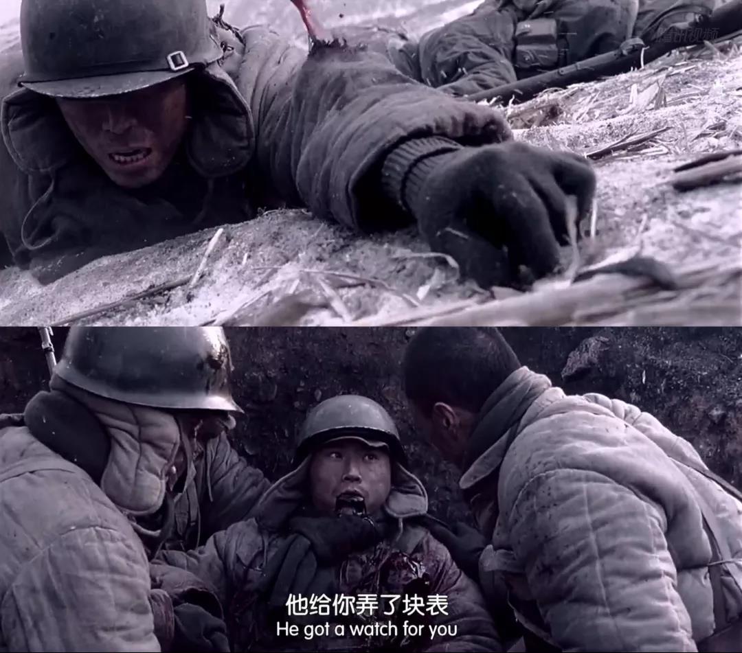 连长的表在第一轮战斗中损坏,士兵吕宽沟只为给连长再找一块手表,冒死匍匐与尸骸之中,不幸被狙击身亡。质朴、心细却令人痛惜的形象以小见大给我们留下深刻印象。