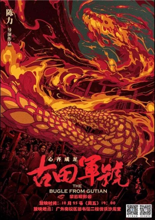革命年代留下的记忆弥足珍贵,起于苍黄,厚泽万代,为纪念古田会议90周年,为了能让青年与革命先辈四目对视,南校区图书馆将于10月25日(星期五)晚7点在图书馆二楼悦读平台放映电影《古田军号》,届时期待与你共享。