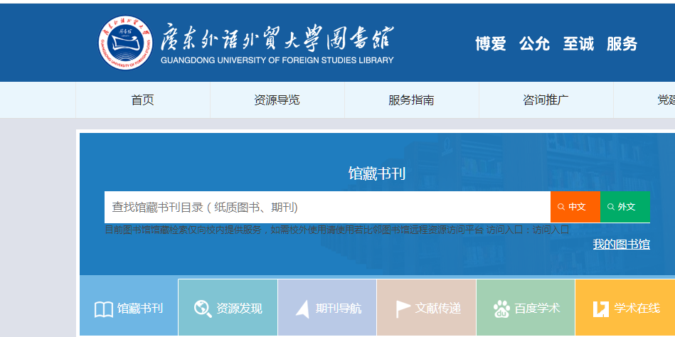 如果三校区的图书馆都没有的话,则可通过新书荐购、馆际互借或文献传递等方式来获得。具体操作方法请看图书馆主页(http://lib.gdufs.edu.cn/)相关专栏。