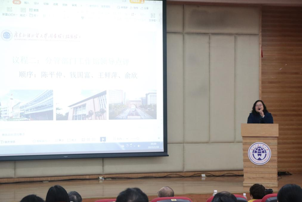各部门的分管副馆长对述职报告进行点评,肯定了各校区在疫情期间保障服务的辛勤付出,鼓励馆员们更加细致扎实推进工作,以审促改,推进资源内涵式发展,更加有创新、有温度地服务师生、校友,服务学校发展。