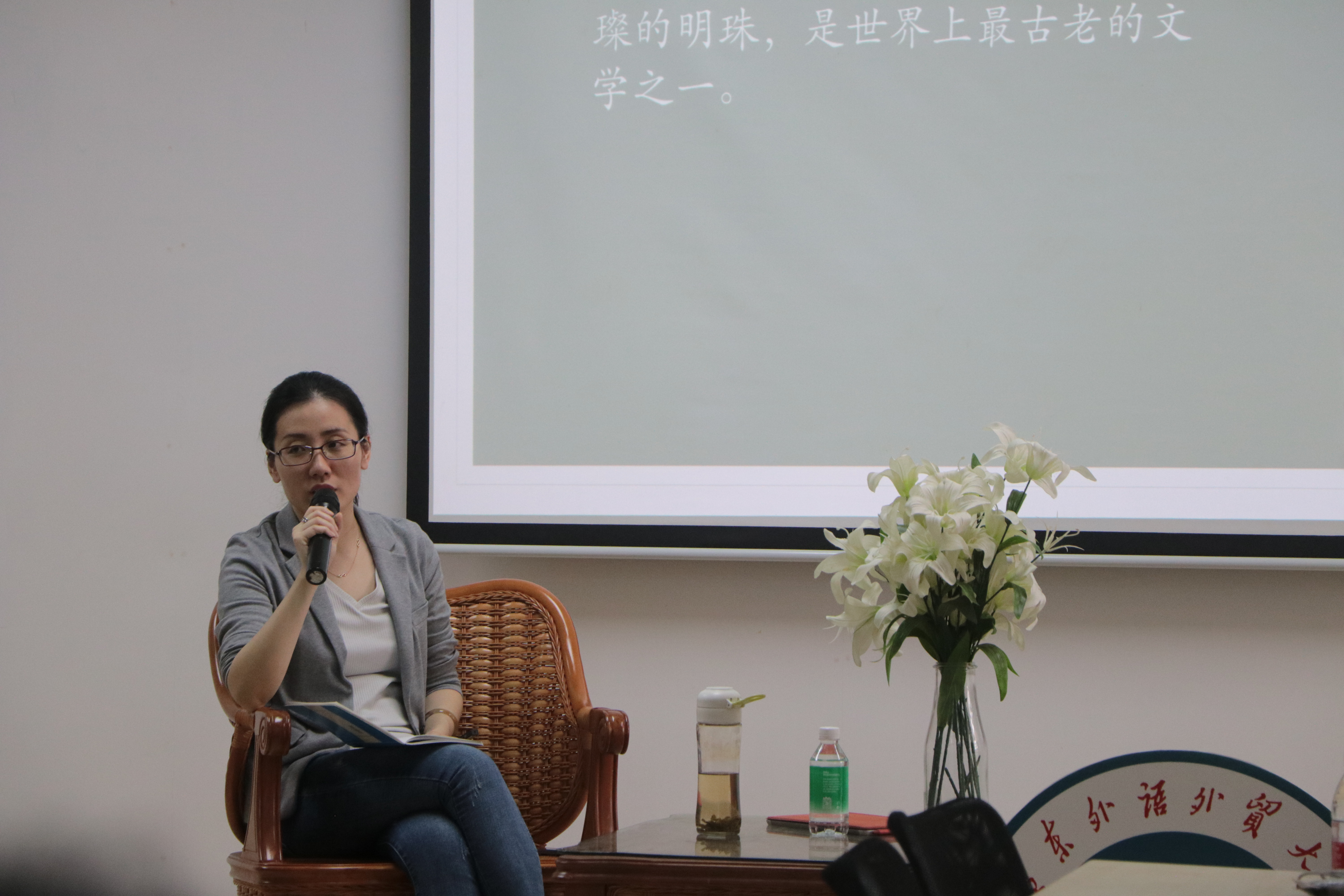 在正式进入讲座主题之前,牛子牧老师先提纲挈领式地向同学们介绍了阿拉伯古代文学的发展历史与主要特征。萌芽于6世纪到7世纪初的阿拉伯古代文学是世界文学瑰宝中一颗璀璨明珠,是世界上最古老的文学之一。伴随着伊斯兰教诞生和历代王朝更迭等历史事件,阿拉伯古典文学经历了贾希利叶时期、伊斯兰时期、阿巴斯时期和近古衰落时期等发展阶段。在此时期,古代诗歌成就斐然,占据了文学史的主导地位,被称为“阿拉伯人的史册”。