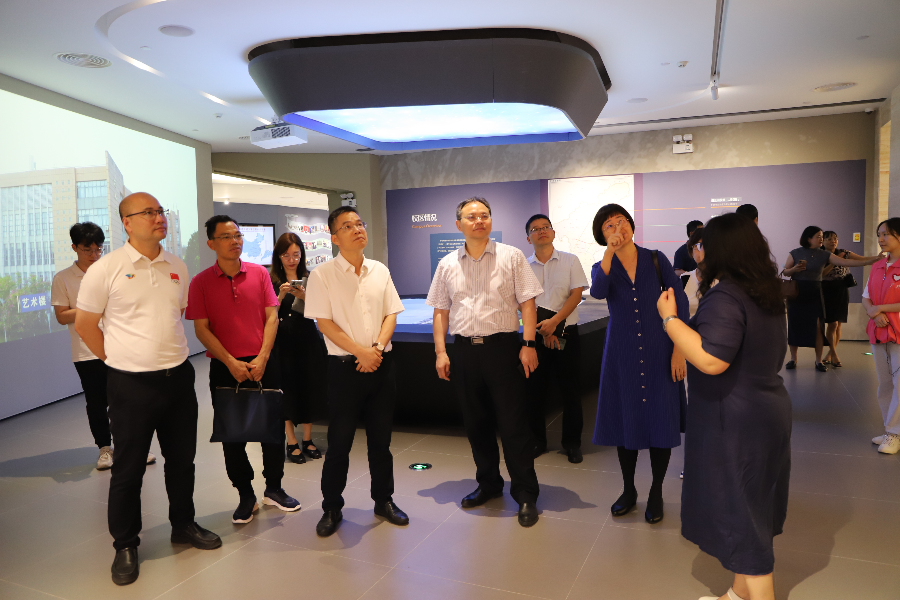 会后,调研人员前往校史馆实地参观,陈红霞做详细介绍,就多媒体设备、设计理念、展示方式等方面进行深入沟通。