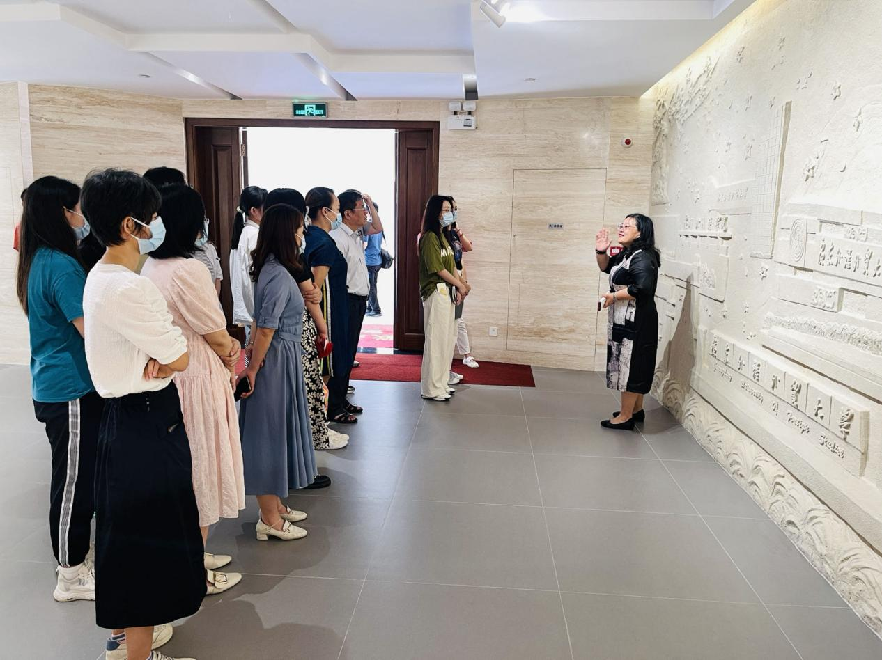 位于白云山校区第一教学楼的新校史馆于2022年11月开馆,陈红霞从校史馆的筹建讲起,为馆员们介绍了新校史馆建设历程。陈红霞带领党员和青年馆员们走过前厅、序厅,进入历史展厅、大屏幕区、校友厅,穿越时光长廊,细致介绍了学校从“‘凤凰鸣矣,于彼高岗’办学溯源与初期发展”到“‘嘤其鸣矣,求其友声’建设国际化特色鲜明的高水平大学”的办学历程。陈红霞对学校自建校以来的历史如数家珍,详细讲解了学校发展历程中的重要事件,介绍了学校各发展阶段在专业建设和学科发展、代表性教学与科研成果、国际合作与交流等方面的成就。