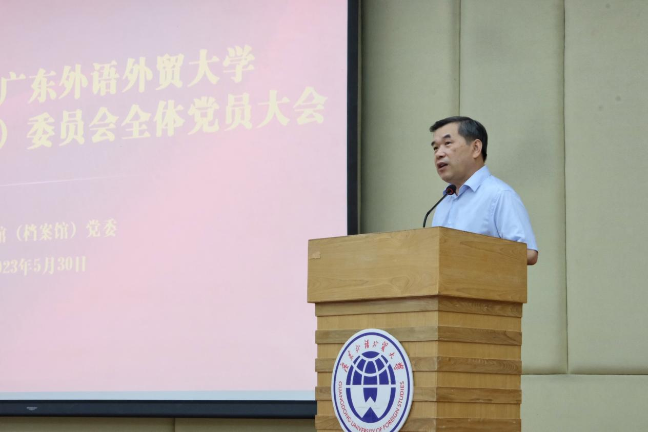 张建武宣读了校党委《关于图书馆(档案馆)党委换届候选人的批复》,对图书馆(档案馆)新一届党委委员候选人进行了介绍。图书馆(档案馆)党委纪检委员、副馆长陈平仲宣读了《中共广东外语外贸大学图书馆(档案馆)委员会委员选举办法(草案)》,并获与会党员一致通过。