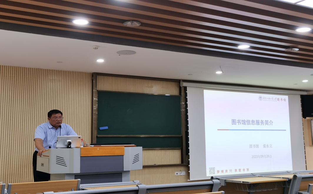 随后,雷老师根据研究生的学习、科研特点,重点向同学们介绍了本馆的各类专题数据库和电子资源,以及部分重要资源的检索技巧。他还风趣幽默地分享了自己资料积累的经验,让同学们认识到利用各种专业化知识管理工具对助力个人今后的学习、科研活动的重要意义。