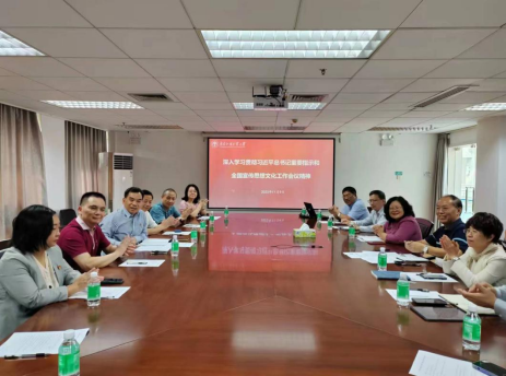 11月9日上午,图书馆(档案馆)与马克思主义学院在白云山校区图书馆会议室开展深入”学习贯彻习近平总书记重要指示和全国宣传思想文化工作会议精神”联学共建活动。马克思主义学院党委书记麦培年、院长毛国民、正处级组织员林绍雄、副院长朱海龙、院长助理雷艳芝、习近平新时代中国特色社会主义思想概论教学部主任兼党支部书记傅薇、近现代史纲要教学部主任兼党支部副书记罗远航、形势与政策和社会实践教学部主任邓晶晶等参加了联学共建活动。图书馆(档案馆)党委书记陈红霞,副馆长陈平仲、王鲜萍、俞欣,图书馆各党支部书记和部分业务干部出席了联学共建活动。