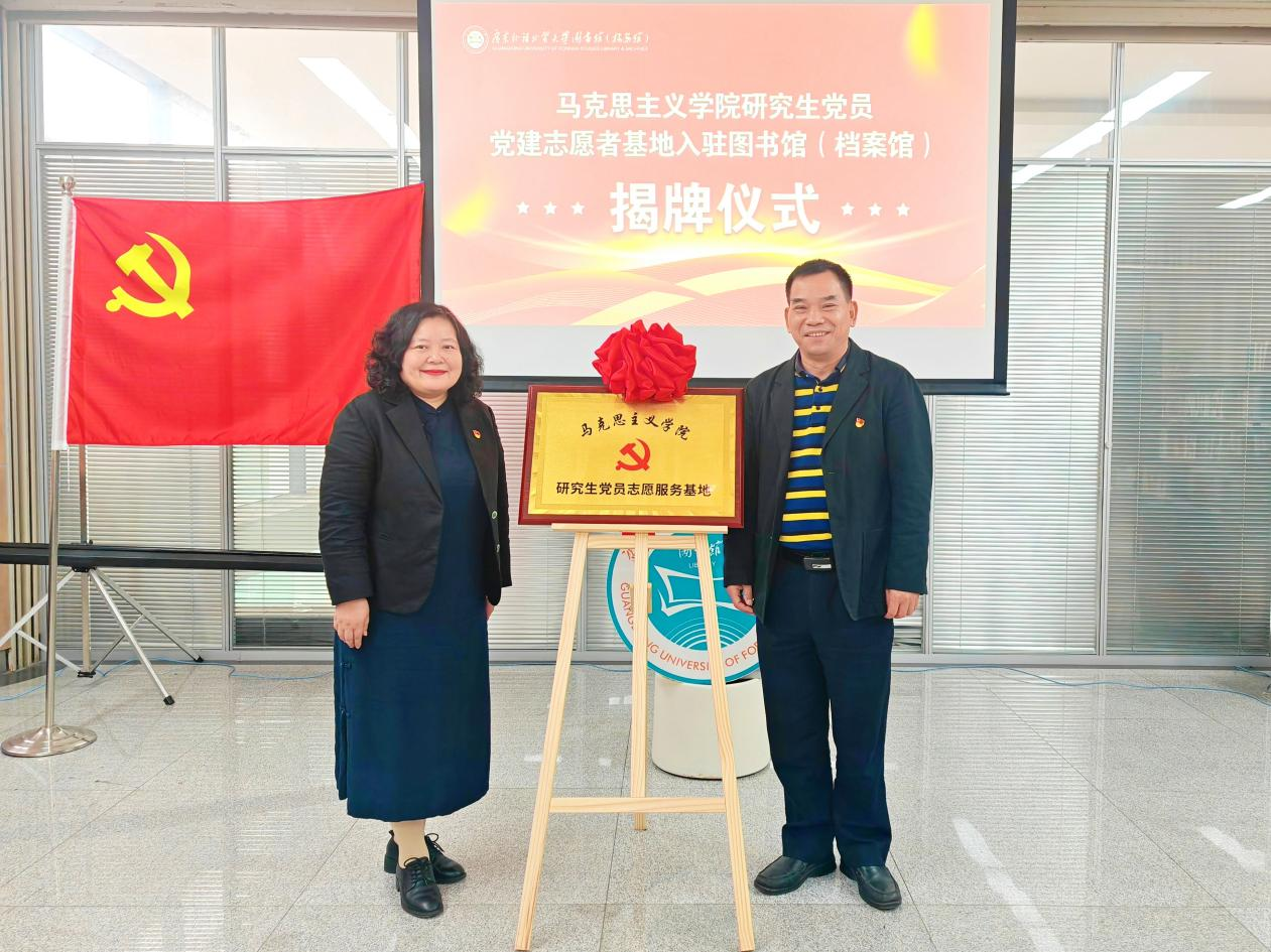 仪式上,陈红霞和麦培年共同为“马克思主义学院研究生党员党建志愿者基地”揭牌。