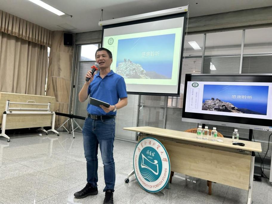2023年10月27日下午,图书馆与社会与公共管理学院在大学城图书馆阅读沙龙室联合举办“奇遇书香”首期经典图书品鉴会。图书馆(档案馆)馆长张建武、社会与公共管理学院副书记陈哲、读者服务部主任王亚、库室组长曾瑞、紫云读书会负责人胡晓明、马超颖、社会与公共管理学院辅导员莫杰及应用心理学2023级学生共约120人参加活动。张建武、霍建梅受邀为与会师生分享经典图书。此次活动由图书馆李丽君老师主持。