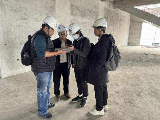 在知识城校区新图书馆建设的关键阶段,为使馆内空间得到有效利用、设计更具人性化、功能更显灵活性,达到馆内简洁并具有科技感的目标。1月5日,知识城校区新馆建设小组再次前往施工现场,与项目设计施工方负责人就馆内装修、布局优化方案进行讨论,调研后优化设计装修需求报告提交至知识城管委会。