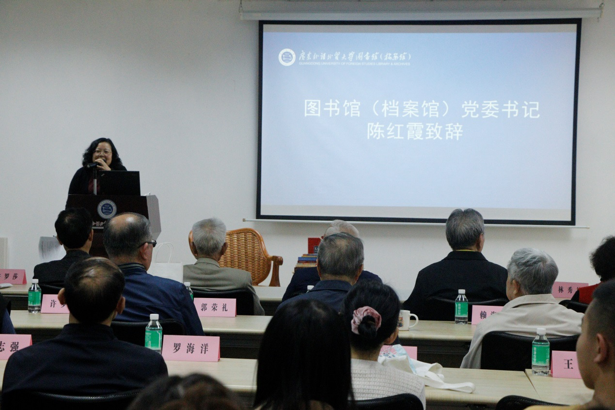 陈红霞代表图书馆(档案馆)致辞,感谢了许友年教授的无私捐赠。她表示这批藏书不仅仅是印尼语学习和研究的重要资料,更是一份珍贵的文化遗产,将进一步丰富我馆东盟文献中心的印尼语资源,为广大师生读者提供更多元的学术资源和阅读选择,为书香校园建设注入活力源泉。