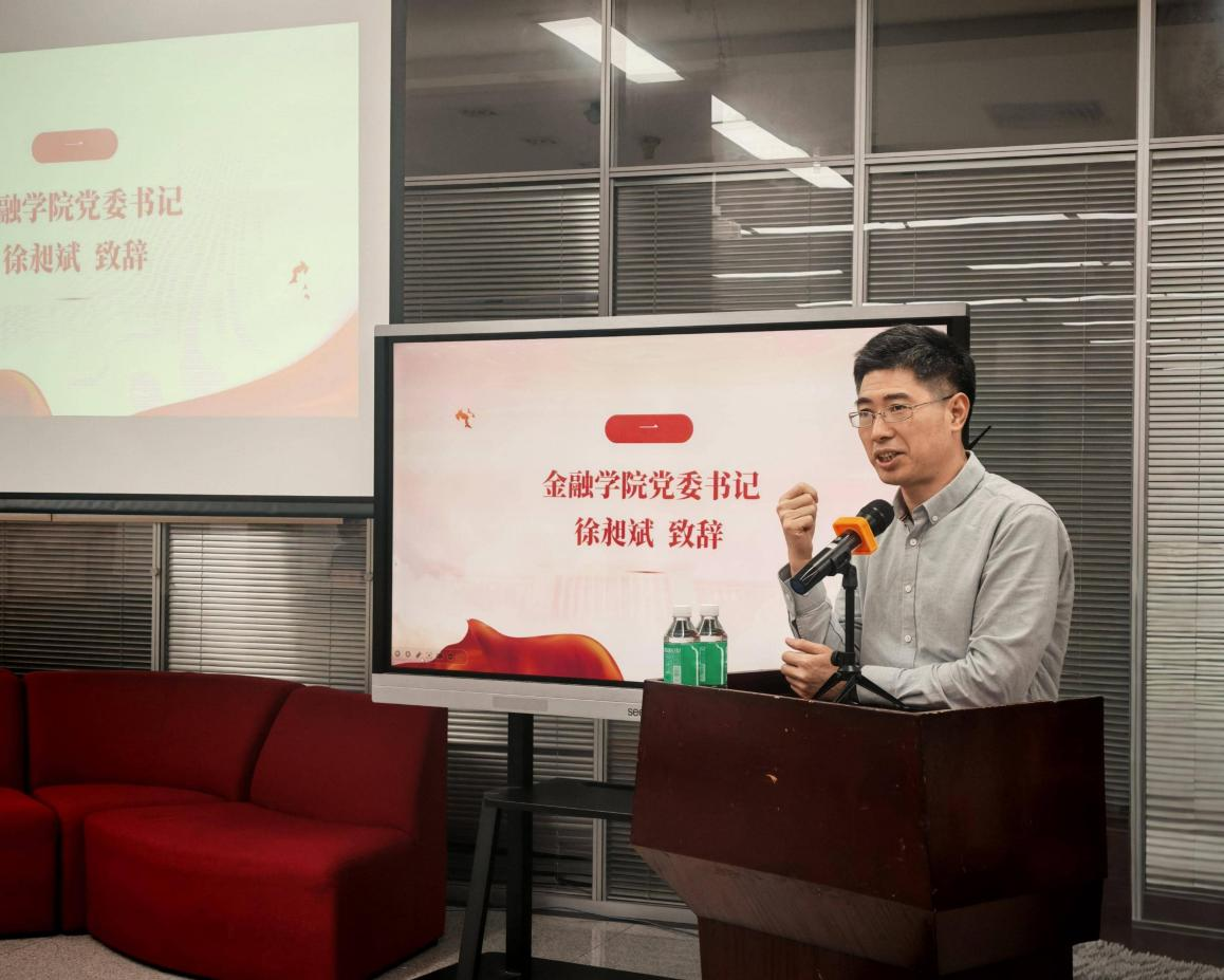 仪式现场,徐昶斌在致辞中强调,图书馆作为大学生涯的核心学习保障平台,其丰富的馆藏资源与完善的软硬件设施,是学子开展系统化深度阅读的重要支撑。他呼吁同学们充分利用这一资源宝库,以良好阅读习惯夯实学业基础、筑牢职业发展根基。同时,徐昶斌介绍,金融学院此前已陆续开展读书分享、教师荐书等特色活动,此次启动的“书香金融”系列活动,将进一步推动学风建设走深走实,帮助学生养成终身受益的阅读习惯。“希望同学们以书为友,在阅读中深耕专业、拓宽视野,成长为兼具专业能力与人文素养的金融人才。”徐昶斌的话语饱含对学子成长的关怀,让在场师生深受启发、备受鼓舞。
