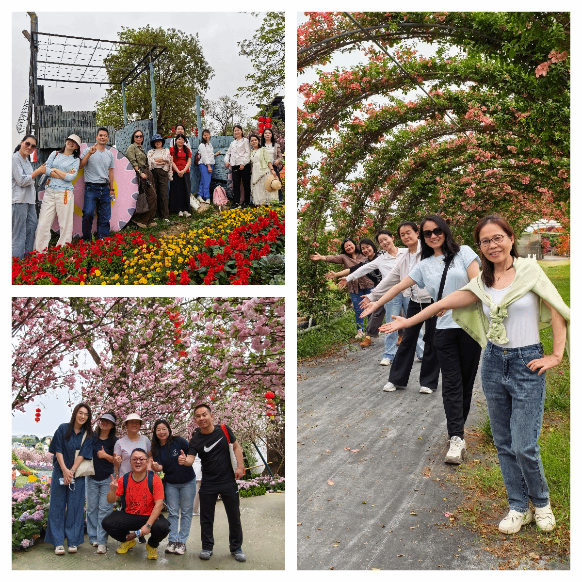 活动当天,阳光明媚,春风和煦。大家乘车前往目的地,一路上欢声笑语不断,车厢内洋溢着轻松愉悦的节日氛围。抵达“梦里水乡”后,映入眼帘的是园区内百花争艳,竞相绽放,大片盛开的鲜花与错落有致的园林景观,伴着凉爽清风令人应接不暇。