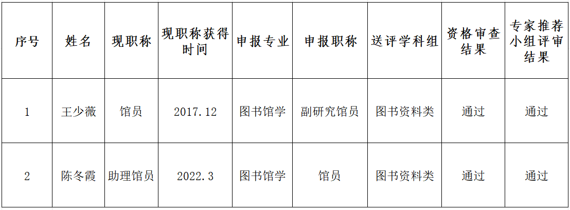 根据学校《关于开展2025年度职称评审及认定工作的通知》(广外人〔2026〕7号)、《广东外语外贸大学职称评审办法》(广外校〔2025〕40号)相关规定,经图书馆(档案馆)2025年度职称评审资格审查小组审查与专家推荐小组评审,现将我馆2025年度职称申报人员资格审查与评审推荐结果予以公示。