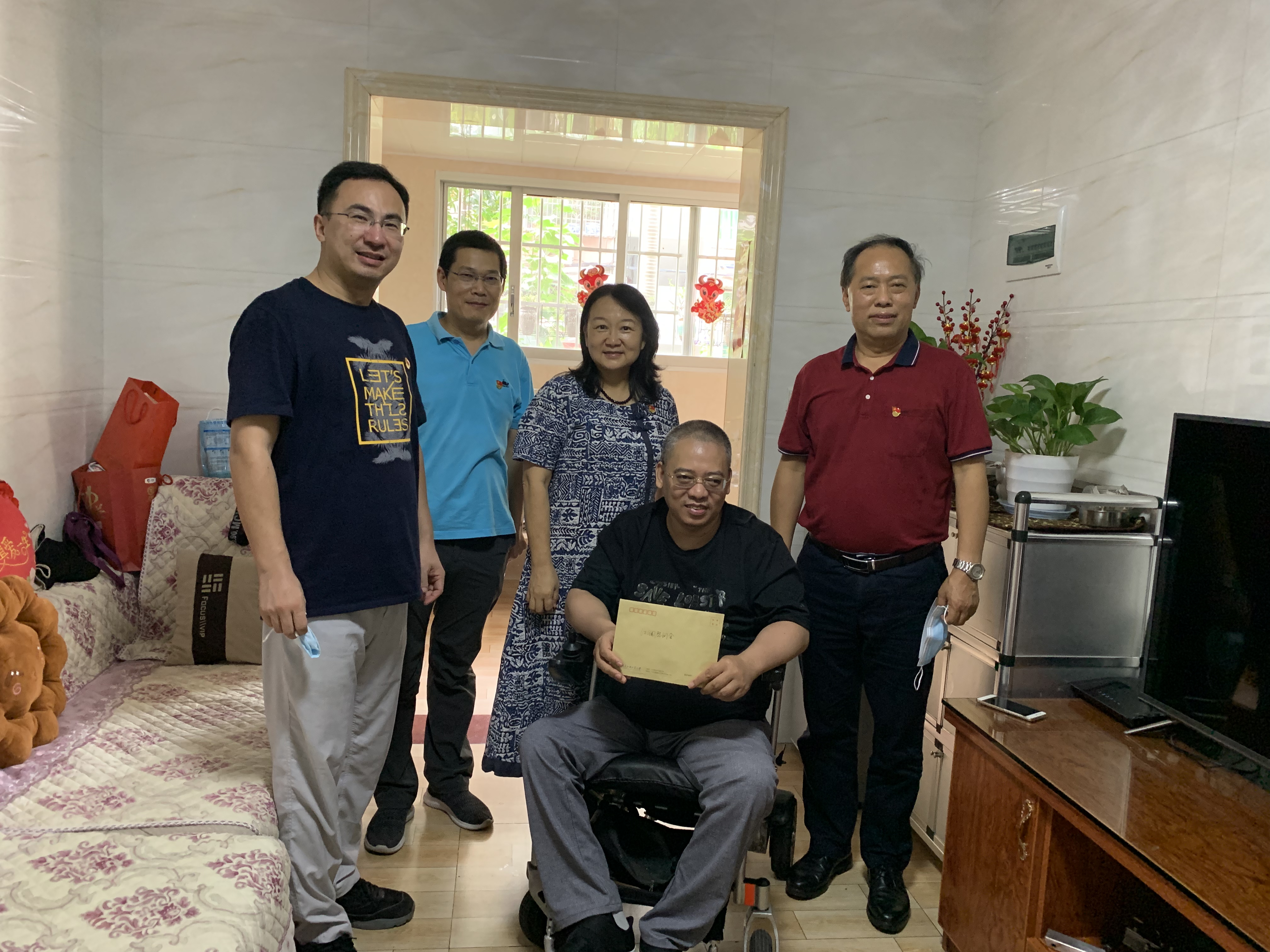 在党的百年华诞即将到来之际,6月25日下午,图书馆党总支书记范静静和党总支委员、副馆长王科,图书馆组织员孙关周、第二党支部书记俞欣一行走访慰问了困难党员江澜,为他送去党组织的关怀和温暖。